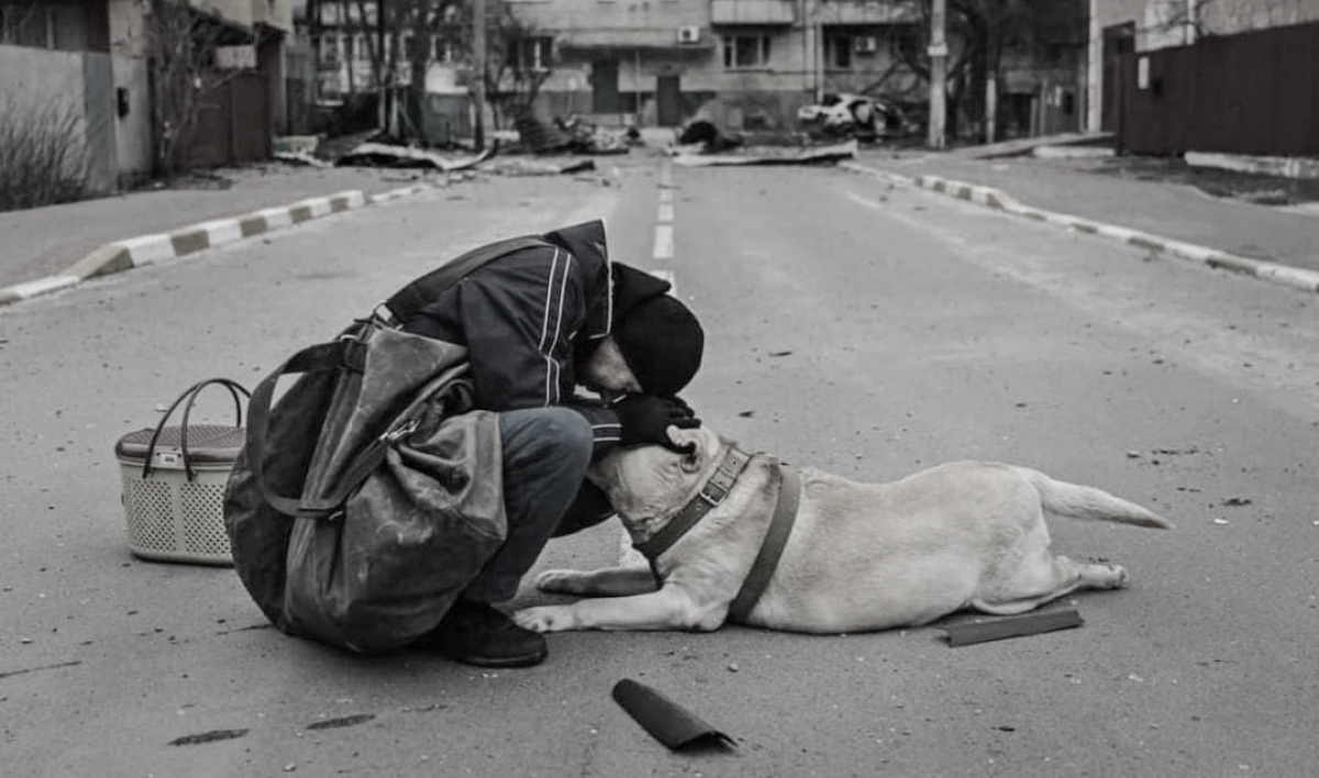 This dog was found near a destroyed house after shelling. He is safe now and looking for a permanent home abroad.